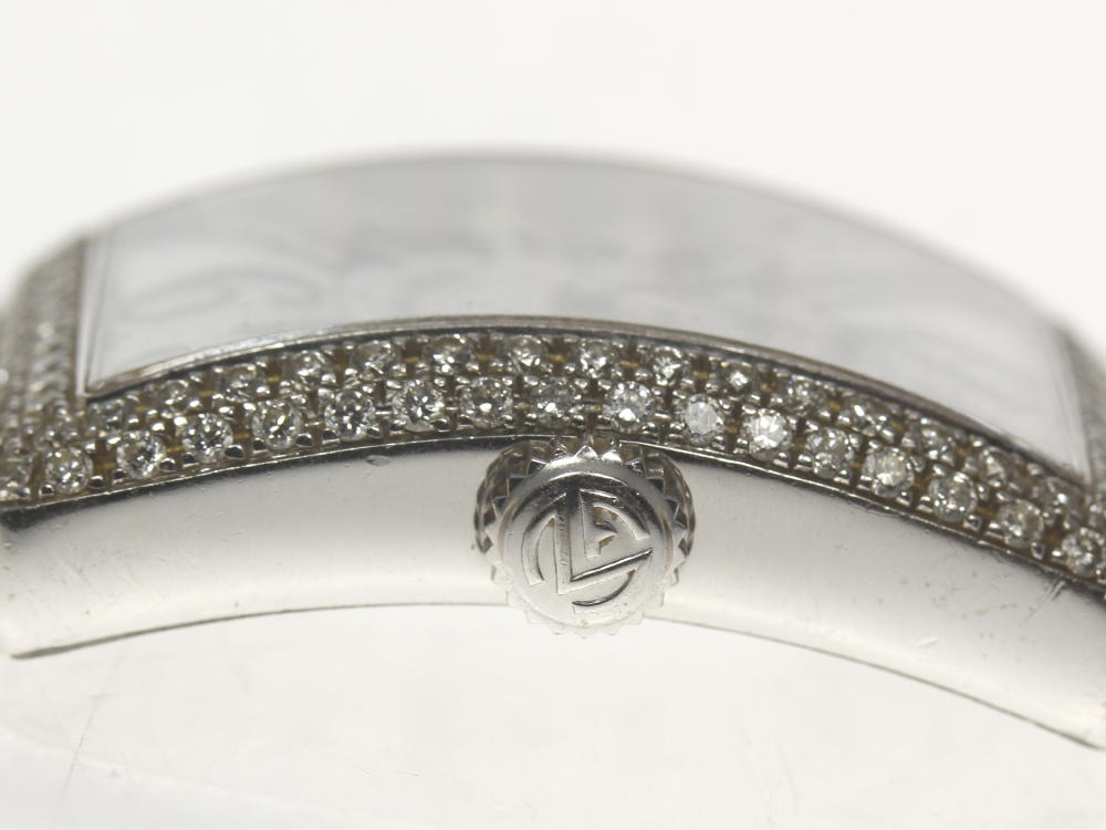 ご覧いただきありがとうございます! 【FRANC MULLER】フランクミュラー K18WG ロングアイランド 902QZ アフターダイヤベゼル 社外革ベルト レディース腕時計のご紹介です★